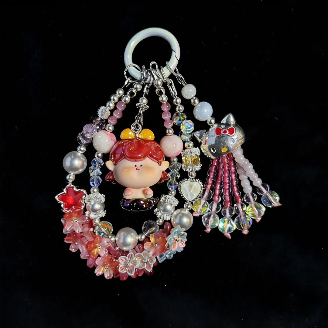 Cherry Flame Serpent – Handmade Design Festival Mengli Doll Beaded Phone Charm Keychain Bag Chain