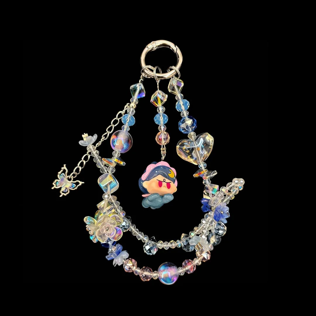 Dreamwave Mini Hero – Handmade Aurora Pink-Blue Doll Beaded Phone Charm / Keychain / Bag Chain