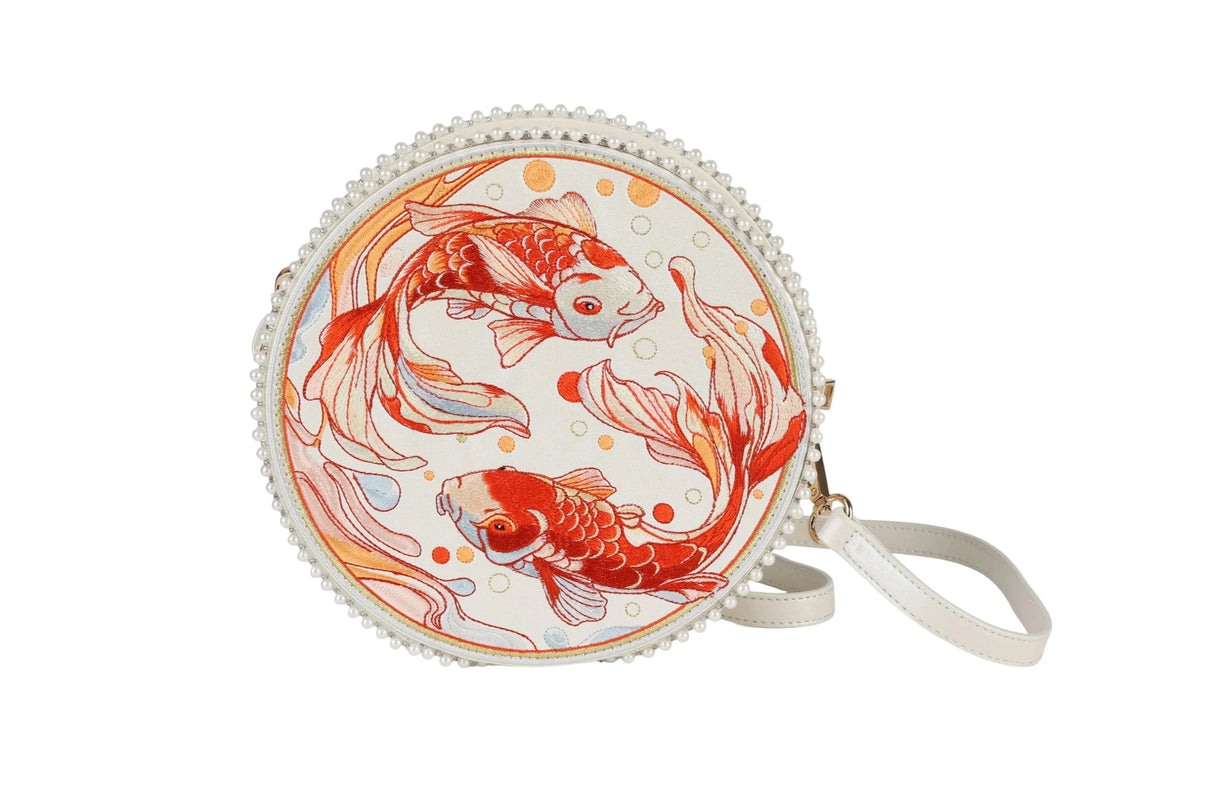 Designed in a round silhouette, playful yet elegant. The circular form paired with the Taiji koi embroidery brings a sophisticated, artistic aesthetic suitable for modern fashion.