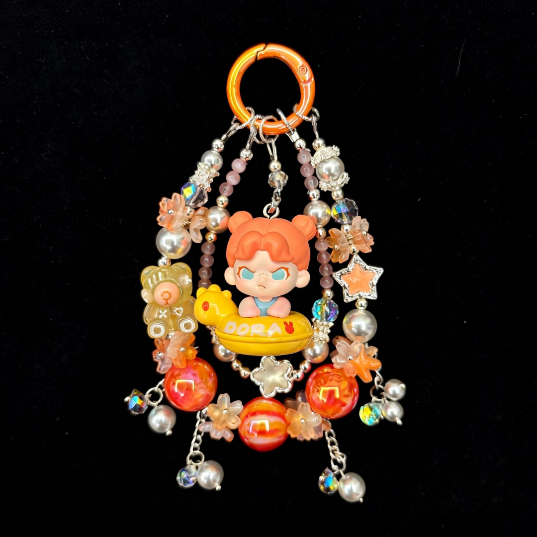 Every Colorful Dora charm is handcrafted with care, layering orange-pink gradient beads, a bun-haired doll, and a swim-ring pearl pendant. Hang it on a phone, bag, or keys, and carry a spark of adventure, a whisper of magic, and a blessing of happiness wherever you go.