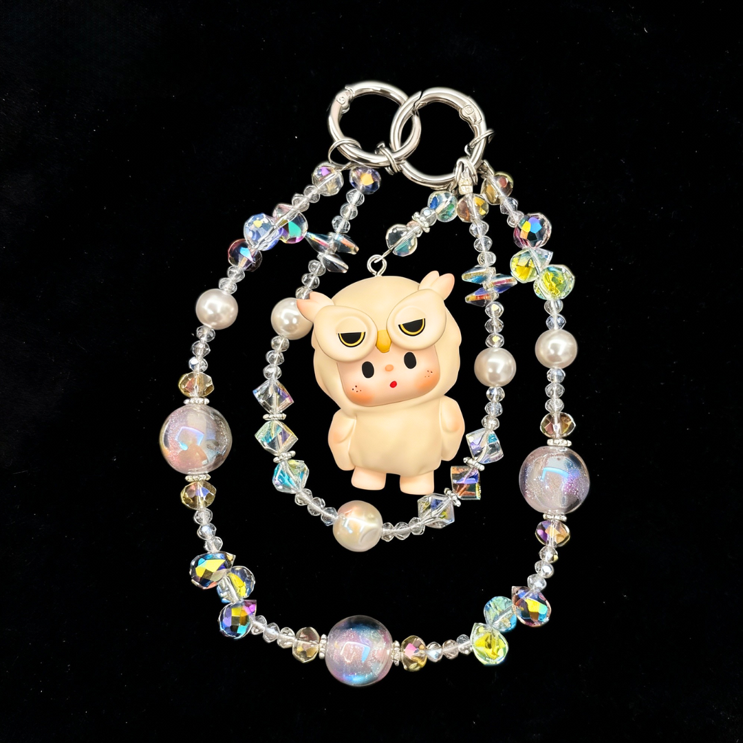 The owl, with its big, curious eyes, represents the spirit of seeking knowledge and understanding. The silver-white gradient beads evoke the quiet stillness of a moonlit night, while the pearl reminds us of the importance of clarity and insight. The owl’s presence reminds us to trust our intuition and seek the truth hidden within the mysteries of the world around us.