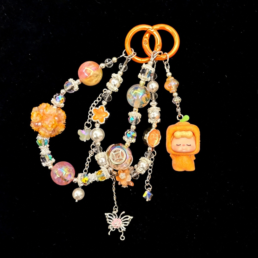 This charm is not just a decoration; it’s a piece of sunshine, a talisman of positivity, and a symbol of nature’s simple pleasures. The tangerine costume represents the sweetness and abundance of life, and the butterfly and flower pendants remind us of the beauty that surrounds us.