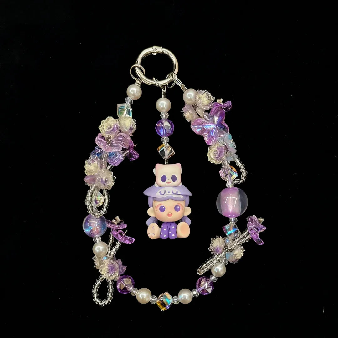Twilight Dreamer – Purple Gradient Crystal Beaded Doll Charm / Phone Chain / Bag Chain / Keychain